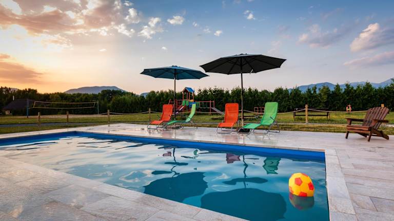 Das Chaty Mara bietet einen eigenen Strandbereich, an dem Sie sich entspannen und die Sonne genießen können. Für Kinder gibt es einen Spielplatz, auf dem sie sich austoben können. Der Garten des Chalets bietet auch Möglichkeiten für Freizeitaktivitäten im Freien.