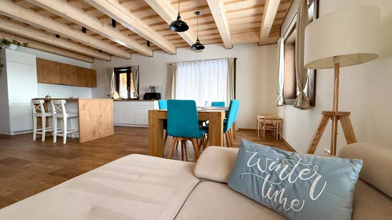 Die Unterkunft befindet sich in Liptovský Trnovec, lediglich 2,2 km vom Aquapark Tatralandia entfernt. Weitere Attraktionen in der Umgebung sind die Höhle Demänovská ľadová jaskyňa, die 14 km entfernt ist, sowie Jasná, die 22 km entfernt liegt. Der nächstgelegene Flughafen ist der Flughafen Poprad-Tatry, welcher sich 60 km von der Unterkunft entfernt befindet.