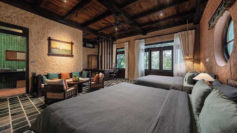 Cháy Mountain Retreat Ninh Bình ist ein Resort, das Übernachtungsmöglichkeiten in klimatisierten Zimmern mit kostenlosem WLAN und eigenem Badezimmer bietet. Es umfasst Annehmlichkeiten wie einen Außenpool, einen Garten und eine Terrasse. Die Rezeption ist rund um die Uhr besetzt, und es stehen Dienstleistungen wie Zimmerservice und Währungsumtausch zur Verfügung.