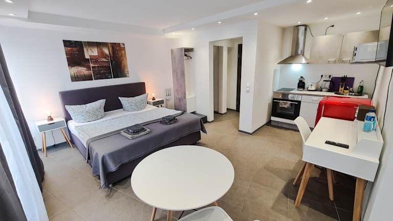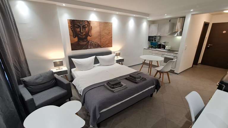 Check-inn hotels - Essen bietet Übernachtungsmöglichkeiten mit kostenlosem WLAN und einer Küchenzeile, die mit einem Kühlschrank, einem Ofen und einer Mikrowelle ausgestattet ist. Die Unterkunft verfügt über Annehmlichkeiten, die einen komfortablen Aufenthalt ermöglichen.