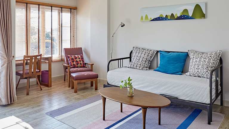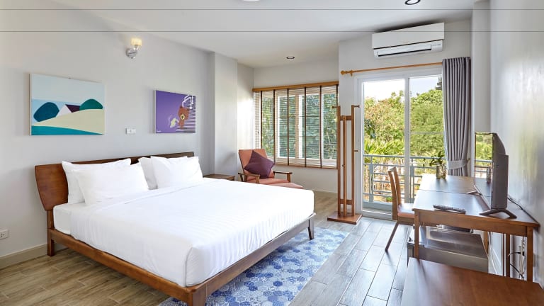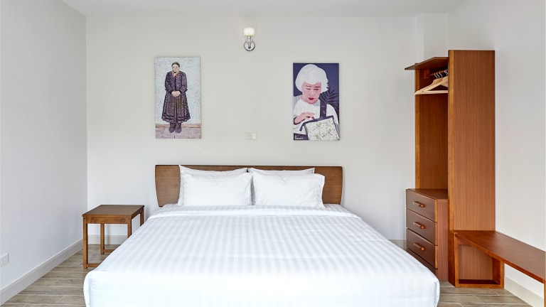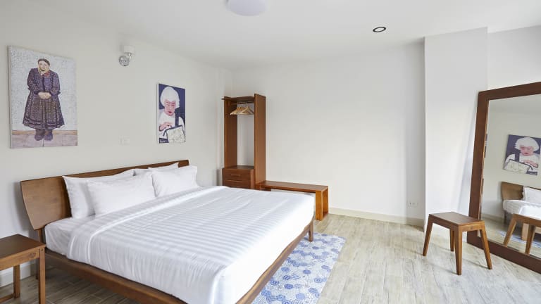 Das Chez Bure - Bure Homestay in Kanchanaburi ist eine gemütliche Unterkunft mit einem schönen Garten und kostenfreiem WLAN. Die Lage ist ideal, nur einen kurzen Spaziergang von der berühmten Brücke des Flusses Kwai und dem Kriegsmuseum Jeath entfernt. Die Unterkunft bietet komfortable Zimmer mit einem Flachbild-Sat-TV und einigen Zimmern mit eigenem Bad und Balkon. Genießen Sie ein leckeres Frühstück entweder als kontinentales oder À-la-carte-Menü. Es gibt auch eine Gemeinschaftslounge und eine Terrasse, auf der Sie entspannen können. In der Umgebung können Sie Aktivitäten wie Radfahren genießen und Sehenswürdigkeiten wie das Death Railway Museum und den Soldatenfriedhof Kanchanaburi besuchen.