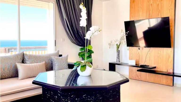 Verbringen Sie Ihren Aufenthalt im Hotel Chez Charifa in Asilah und genießen Sie die luxuriösen Unterkünfte mit einem eigenen Pool, einem Balkon und Meerblick. Entspannen Sie im Garten oder auf der Terrasse und erleben Sie unvergessliche Momente direkt am Strand. Das klimatisierte Apartment bietet Ihnen Komfort mit 2 Schlafzimmern, einem Wohnzimmer und einer voll ausgestatteten Küche. Handtücher und Bettwäsche werden gestellt, damit Sie sich wie zu Hause fühlen. Entdecken Sie die nahe gelegenen Sehenswürdigkeiten wie das Stadion Ibn Batouta und das American Legation Museum und erreichen Sie den Flughafen Tanger-Boukhalef in nur 40 km Entfernung.