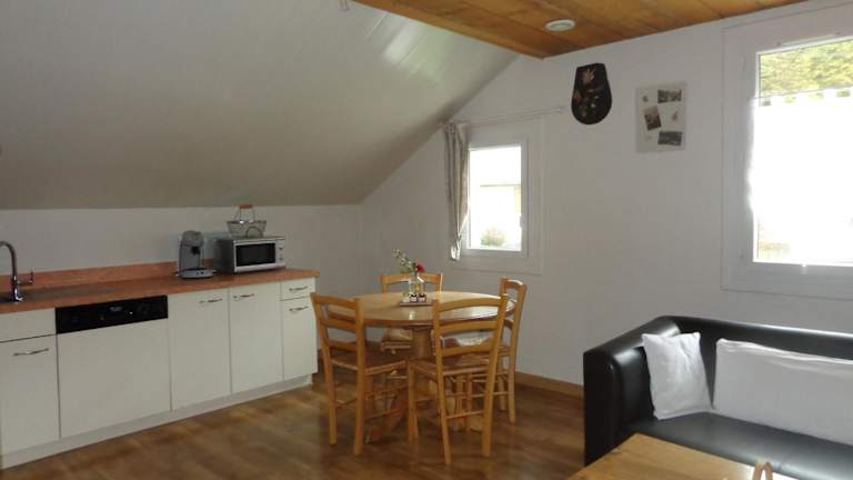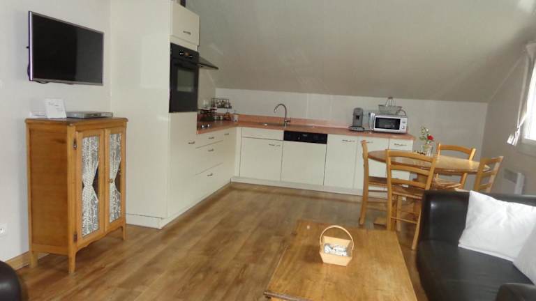 Die Ferienwohnung umfasst ein Schlafzimmer, ein Wohnzimmer sowie eine voll ausgestattete Küche mit Kühlschrank und Kaffeemaschine. Zudem gibt es ein Badezimmer mit Dusche und Haartrockner. Handtücher und Bettwäsche werden bereitgestellt.