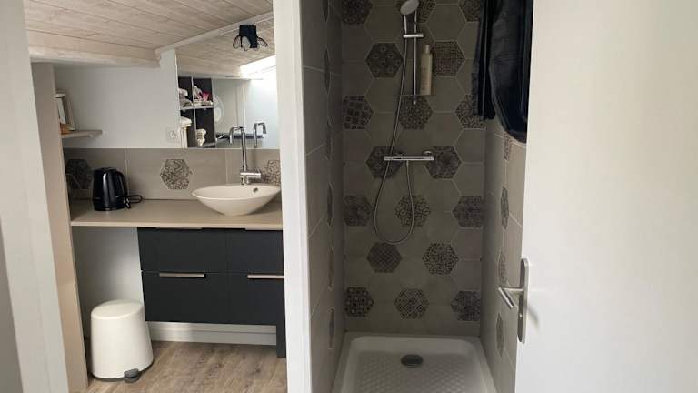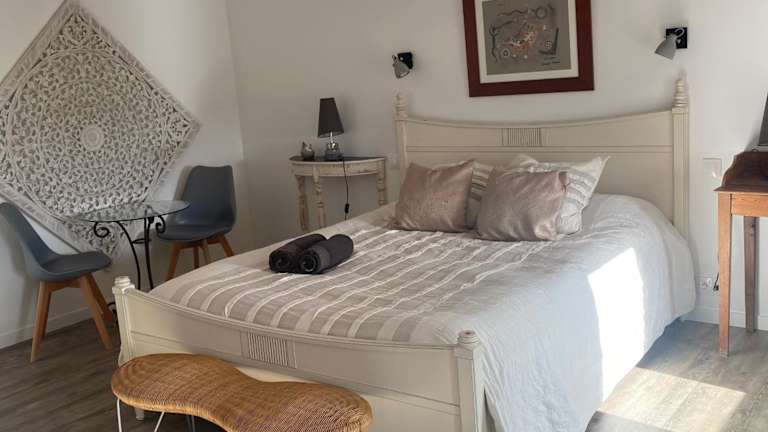 Die Unterkünfte im Chez Isabelle et Johann verfügen alle über eine Terrasse mit Blick auf den Garten. Genießen Sie den Komfort und die Ruhe dieser gemütlichen Zimmer.