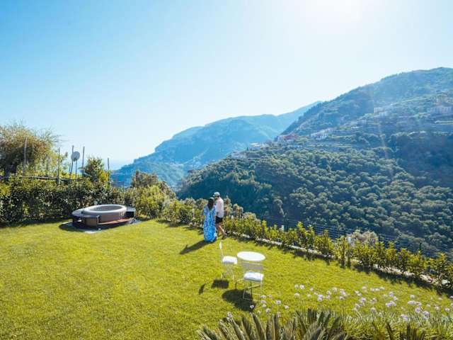 Chez Lia - Private garden and tub, sea view close to Villa Eva and Cimbrone, Ravello bietet eine ansprechende Ferienwohnung mit einem eigenen Pool und einem Garten, die mit Klimaanlage ausgestattet ist. Die Unterkunft bietet nette Ausblicke auf das Meer und die Berge.