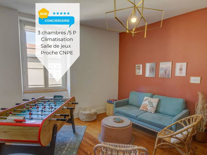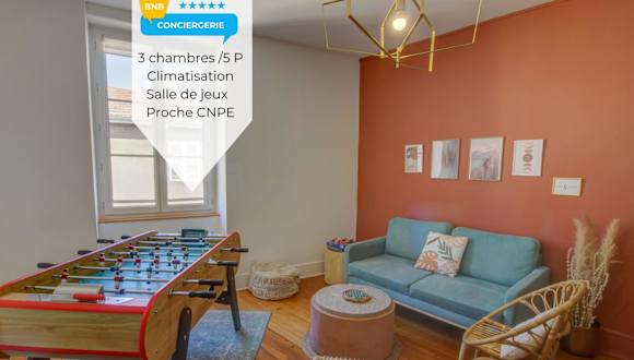 Chez lulu-La salle de jeux bietet Übernachtungsmöglichkeiten in einer Ferienwohnung mit kostenlosem WLAN und Klimaanlage. Die Unterkunft verfügt über 3 Schlafzimmer und ist privat geführt. Es sind keine Feiern erlaubt und ein Mindestalter von 18 Jahren für den Check-in ist erforderlich.