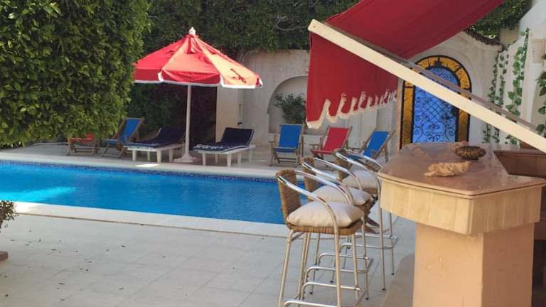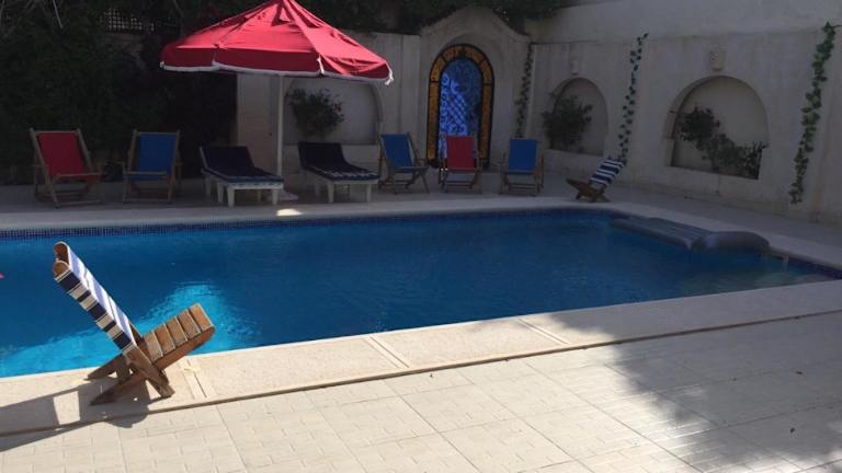 Verbringen Sie einen entspannten Aufenthalt im Chez Nagy in Alexandria. Die Unterkunft bietet komfortable Zimmer mit Balkon und Poolblick. Genießen Sie die Gemeinschaftseinrichtungen wie den Außenpool, Tischtennis und Darts. Die Lage des Hotels ermöglicht es Ihnen, die Sehenswürdigkeiten der Stadt wie die Zitadelle von Alexandria und die Katakomben von Kom el Shoqafa zu erkunden. Der internationale Flughafen Borg el Arab ist ebenfalls gut erreichbar.