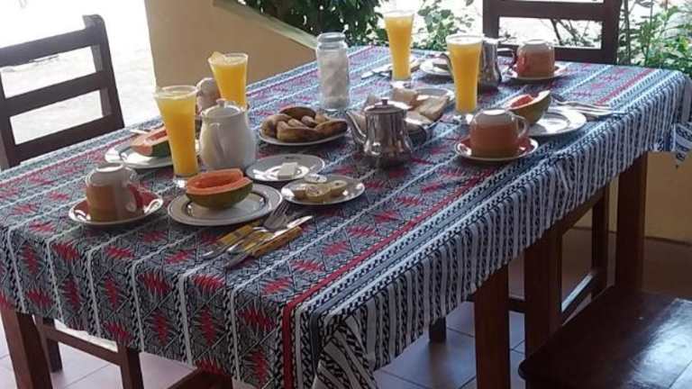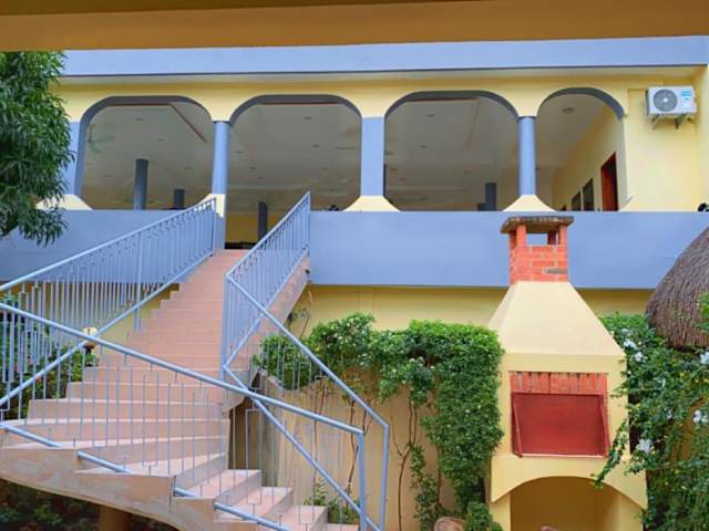 Das Hotel Chez Sabine in Abomey ist ein charmantes Bed & Breakfast, das mit seinem schönen Garten, der Terrasse und dem hauseigenen Restaurant einen angenehmen Aufenthalt verspricht. Das kostenfreie WLAN und der Gartenblick sorgen für zusätzlichen Komfort. Kostenlose Privatparkplätze und eine rund um die Uhr besetzte Rezeption stehen den Gästen zur Verfügung. Die Zimmer sind mit einem Flachbild-Sat-TV ausgestattet und Handtücher sowie Bettwäsche werden gestellt. Jeden Morgen wird im Bed & Breakfast ein köstliches kontinentales und vegetarisches Frühstück serviert. Der Flughafen Cotonou Cadjehoun ist etwa 128 km entfernt, und die Unterkunft bietet einen kostenpflichtigen Flughafentransfer an.