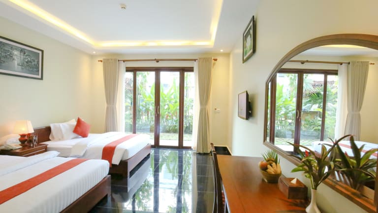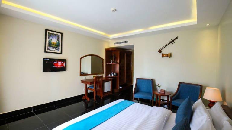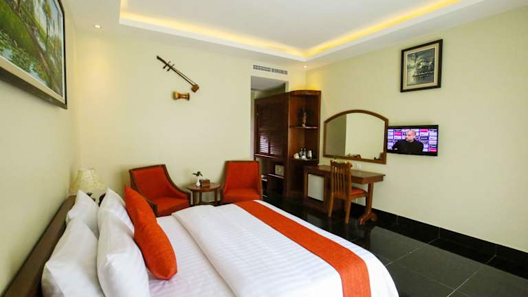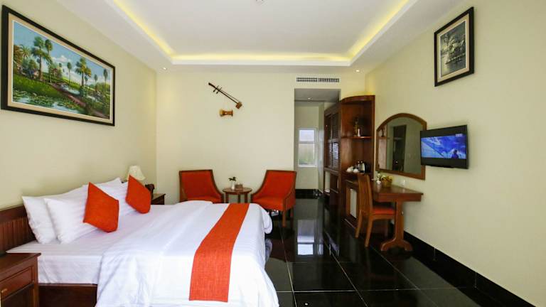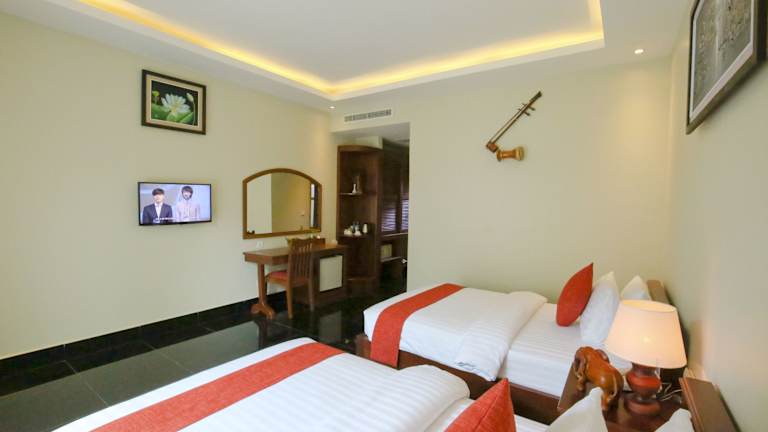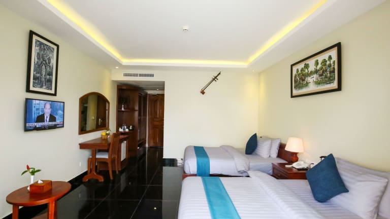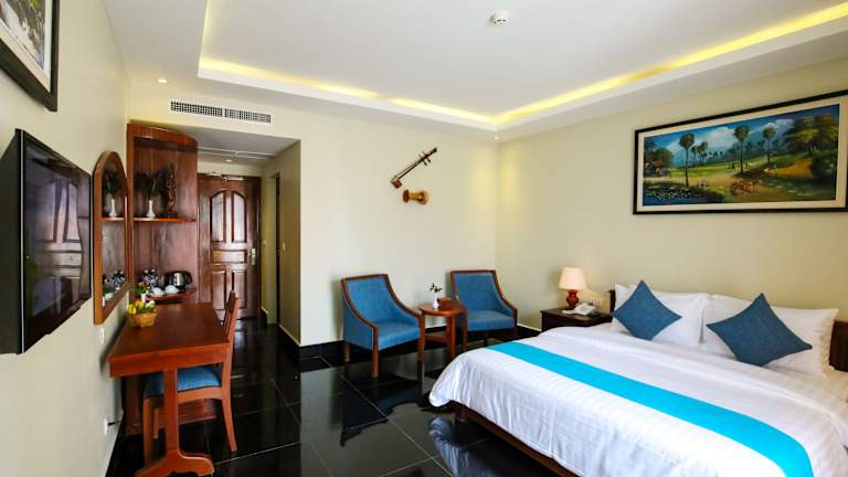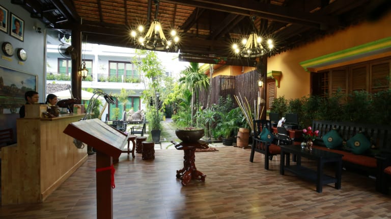 Das Hotel Chheng Residence in Siem Reap ist der perfekte Ort für einen erholsamen Urlaub. Mit einem ganzjährigen Außenpool, einer Terrasse und einer hauseigenen Bar bietet das Hotel alle Annehmlichkeiten, die Sie für einen komfortablen Aufenthalt benötigen. Die Zimmer sind stilvoll eingerichtet und verfügen über kostenfreies WLAN, ein eigenes Bad mit einer separaten Badewanne und Dusche sowie einen Balkon oder einen Sitzbereich zum Entspannen. Das freundliche Personal steht Ihnen rund um die Uhr zur Verfügung und hilft Ihnen gerne bei der Organisation von Ausflügen und der Buchung von Eintrittskarten. Nutzen Sie die Möglichkeit, Fahrräder auszuleihen oder ein Auto zu mieten, um die Umgebung zu erkunden. Die zentrale Lage des Hotels ermöglicht es Ihnen, die Pub Street und die King's Road Angkor in kurzer Entfernung zu erreichen. Der Flughafen Siem Reap ist ebenfalls nur 7 km entfernt.