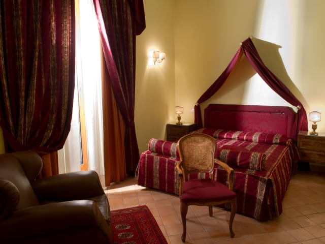 Die mit Doppel- oder Kingsize-Bett möblierten Standard-Doppelzimmer sind ausgestattet mit Bad mit Dusche, Haartrockner, Fernseher, Minibar, Internetzugang, Telefon mit Direktwahl, Safe, Minibar, Airconditioning und Heizung. Großzügige Fenster mit Isolierverglasung sorgen für schönes Licht; einige der Zimmer haben einen kleinen Balkon. Die Superior-Zimmer verfügen außerdem über Badewanne mit Hydromassage und sind mit historischen Stilmöblen geschmackvoll möbliert.
