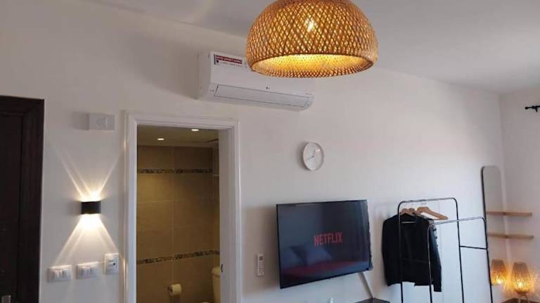 Das klimatisierte Apartment im Chic Seaview Studio + Private Roof - Nabq Bay verfügt über ein Schlafzimmer, in dem Sie sich nach einem ereignisreichen Tag entspannen können. Die gut ausgestattete Küche ermöglicht es Ihnen, Ihre eigenen Mahlzeiten zuzubereiten. Entspannen Sie sich auch vor dem Flachbild-TV und nutzen Sie den kostenlosen WLAN-Zugang. Privatparkplätze stehen Ihnen ebenfalls zur Verfügung.