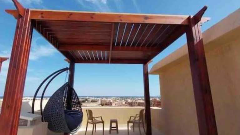 Das Chic Seaview Studio + Private Roof - Nabq Bay bietet Ihnen eine komfortable Unterkunft im Stadtteil Nabq Bay in Sharm El Sheikh. Das klimatisierte Apartment verfügt über ein Schlafzimmer, eine gut ausgestattete Küche und einen Flachbild-TV. Nutzen Sie den kostenlosen WLAN-Zugang und die Privatparkplätze. Die Unterkunft befindet sich in der Nähe von verschiedenen Stränden und Sehenswürdigkeiten wie dem SOHO Square und dem International Congress Center. Der internationale Flughafen Sharm el-Sheikh ist nur 11 km entfernt.