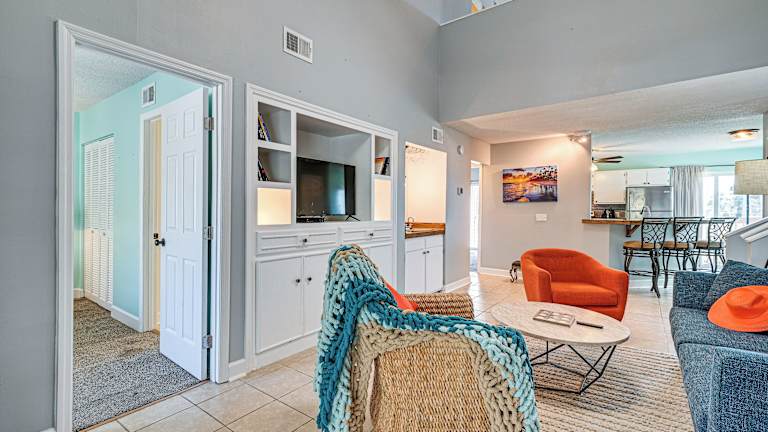 Das Chic Surfside Beach Condo with Screened Porch bietet moderne Übernachtungsmöglichkeiten mit einem Balkon und kostenlosem WLAN. Die Unterkunft umfasst 3 Schlafzimmer und ist klimatisiert. Eine Ausstattung beinhaltet einen Flachbild-TV sowie eine voll ausgestattete Küche mit Kühlschrank und Geschirrspüler. Handtücher und Bettwäsche werden bereitgestellt. Check-in ist ab 16:00 Uhr und Check-out bis 10:00 Uhr möglich. Das Mindestalter für den Check-in beträgt 25 Jahre.