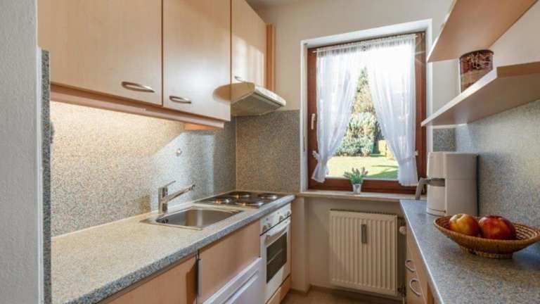 Die Ferienwohnung umfasst ein Schlafzimmer und ein Wohnzimmer sowie eine gut ausgestattete Küchenzeile mit Kühlschrank und Geschirrspüler. Zur Ausstattung gehören auch ein Balkon, eine Kaffeemaschine, ein TV sowie Handtücher und Bettwäsche. WLAN ist kostenlos verfügbar.