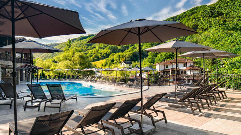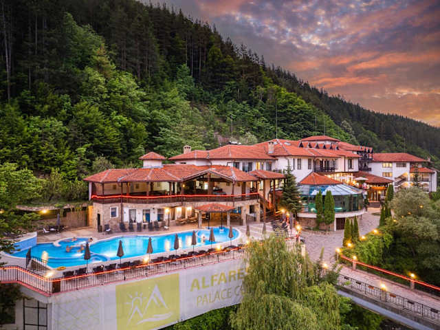 Das Alfaresort Palace Chiflika ist ein charmantes 3-Sterne-Hotel im Herzen des Zentralbalkans. Mit seinen Innen- und Außenpools mit natürlichem Thermalwasser, dem Wellnesscenter und dem erstklassigen Service ist es der ideale Ort für Entspannung und Erholung. Genießen Sie die köstlichen bulgarischen und internationalen Gerichte im Restaurant oder in der Taverne und erkunden Sie die malerische Umgebung von Chiflik und das nahegelegene Kloster Trojan.