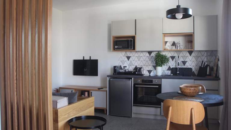 Die Apartments sind voll ausgestattet mit einer kompletten Küche, die über einen Kühlschrank, einen Ofen, eine Mikrowelle, eine Kaffeemaschine und einen Wasserkocher verfügt. Jedes Apartment bietet einen Essbereich, einen Flachbild-TV und ein eigenes Badezimmer mit Dusche, kostenlosen Pflegeprodukten und einem Haartrockner. Zu den weiteren Annehmlichkeiten gehören kostenfreies WLAN, Klimaanlage sowie tägliche Reinigungsdienste.