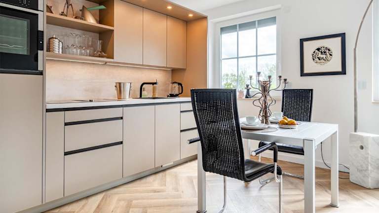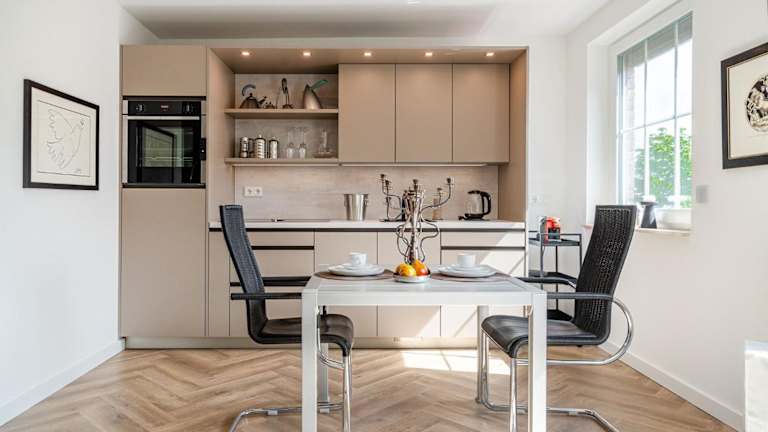 Die Unterkunft verfügt über eine voll ausgestattete Küchenzeile, die einen Kühlschrank und eine Kaffeemaschine einschließt. Eine Verpflegung ist nicht explizit angegeben.