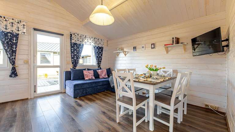 Chłopy Beach Resort - domki letniskowe i apartamenty bietet eine familienfreundliche Unterbringung mit einer Terrasse, einem Sitzbereich sowie einem Flachbild-TV. Die Unterkunft umfasst eine voll ausgestattete Küchenzeile mit Kühlschrank, Mikrowelle und Herdplatte sowie ein eigenes Badezimmer mit Dusche. Haustiere sind gestattet, jedoch können zusätzliche Gebühren anfallen.