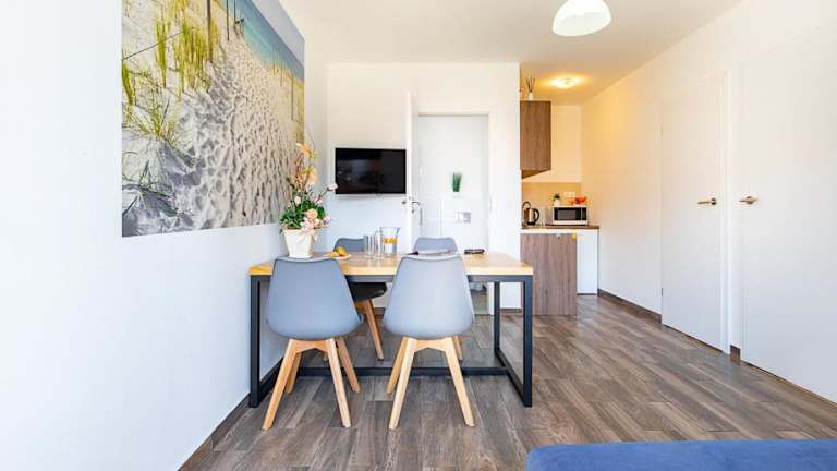 Die Unterkünfte der Chłopy Beach Resort - domki letniskowe i apartamenty umfassen einen Wohnbereich mit Sitzmöglichkeiten und einen Flachbildfernseher. Jedes Zimmer verfügt über eine voll ausgestattete Küchenzeile, ein eigenes Badezimmer mit Dusche sowie eine Terrasse. Die Gäste können zwischen Nichtraucher- und Familienzimmern wählen.