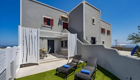 Die Unterkunft liegt etwa 1,1 km vom Archäologischen Museum Thera entfernt und 2,4 km vom Strand Exo Gialos. In der Umgebung befinden sich ein Garten sowie interessante Orte wie das Museum of Prehistoric Thera, der Busbahnhof und Megaro Gyzi. Der nächste Flughafen, der Flughafen Santorin, ist 7 km entfernt und bietet einen kostenpflichtigen Flughafentransfer.