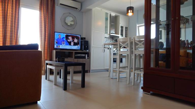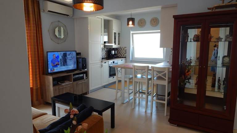 Die klimatisierten Apartments im Hotel Christina-2 bieten Komfort und Bequemlichkeit. Jedes Apartment verfügt über einen Balkon, auf dem Sie die frische Luft und den Blick auf die Stadt genießen können. Die voll ausgestattete Küche mit Kühlschrank und Kaffeemaschine ermöglicht es Ihnen, Ihre eigenen Mahlzeiten zuzubereiten. Das Apartment verfügt über ein Schlafzimmer, ein Wohnzimmer und ein Badezimmer mit Dusche und Haartrockner. Handtücher und Bettwäsche werden gestellt, um Ihren Aufenthalt so angenehm wie möglich zu gestalten.