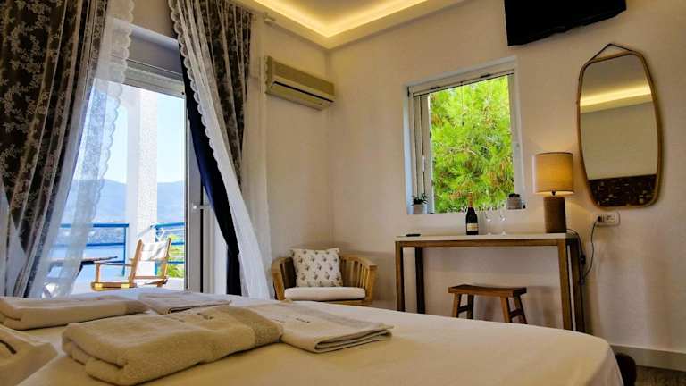 Die Unterkünfte im Christine Studios sind geräumig und hell gestaltet. Die Zimmer verfügen über eine Klimaanlage, weiße Wände und Fliesenböden, die eine angenehme Atmosphäre schaffen. Jedes Zimmer bietet zudem einen Balkon mit direktem oder seitlichem Blick auf den Saronischen Golf, wo Sie die frische Meeresluft genießen können. Zur Ausstattung gehören ein Kühlschrank und ein TV. Im eigenen Bad finden Sie kostenlose Pflegeprodukte.