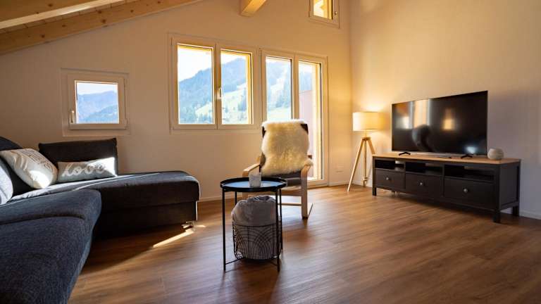 Das Apartment in der Chuenislodge2 Neu bietet geräumige und komfortable Unterkünfte mit 2 Schlafzimmern, einem Wohnzimmer und einem Balkon mit Bergblick. Die Ausstattung umfasst auch einen Flachbild-TV und eine voll ausgestattete Küche mit Kühlschrank und Geschirrspüler. Handtücher und Bettwäsche werden gestellt, um Ihren Aufenthalt noch angenehmer zu gestalten.