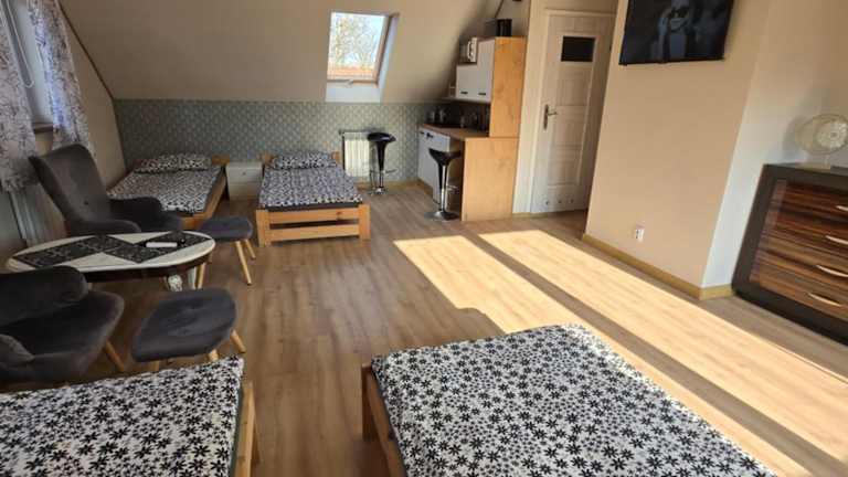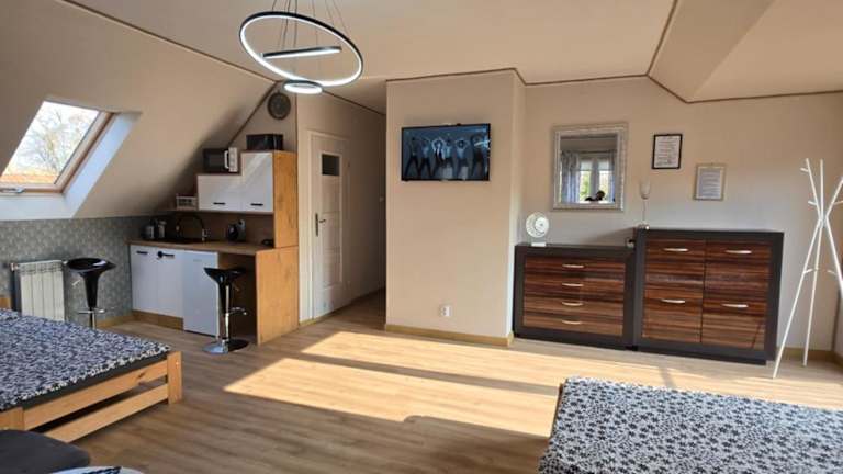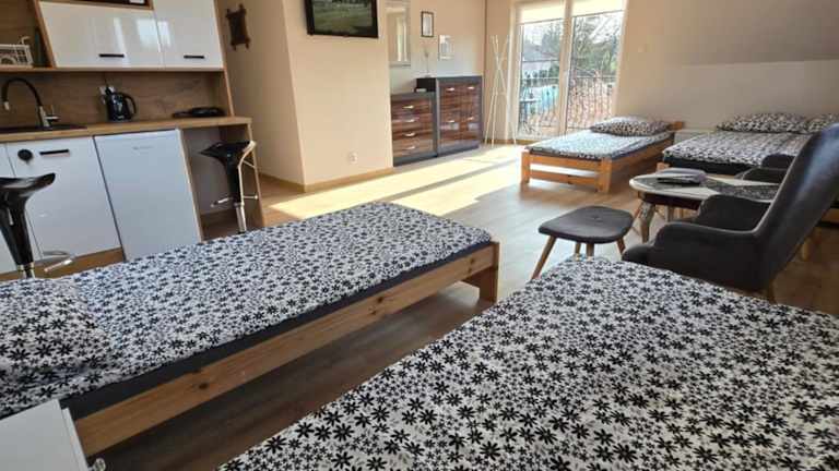 Das Cicha Dolina in Wydminy ist der ideale Ort für einen erholsamen Aufenthalt inmitten der Natur. Die Unterkunft bietet komfortable Zimmer mit kostenfreiem WLAN und Flachbild-TV sowie eine Terrasse oder einen Balkon, von denen aus Sie die malerische Umgebung genießen können. Der saisonale Außenpool und der Garten laden zum Entspannen ein, während der Grillplatz für gesellige Abende im Freien sorgt. Für Familien gibt es einen Kinderspielplatz und eine Gemeinschaftslounge. In der Nähe finden Sie auch interessante Sehenswürdigkeiten wie den Golfplatz Talki und die Festung Boyen.