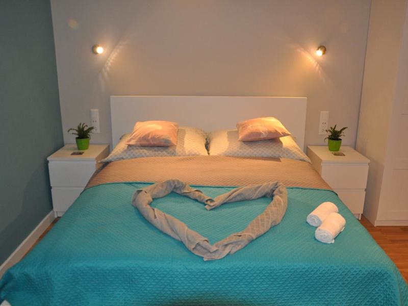 Die Ferienwohnung umfasst 2 Schlafzimmer, ein Wohnzimmer, eine voll ausgestattete Küchenzeile mit Kühlschrank und Kaffeemaschine sowie 2 Badezimmer, die mit einer Badewanne oder Dusche und einem Haartrockner ausgestattet sind. Handtücher und Bettwäsche werden bereitgestellt.