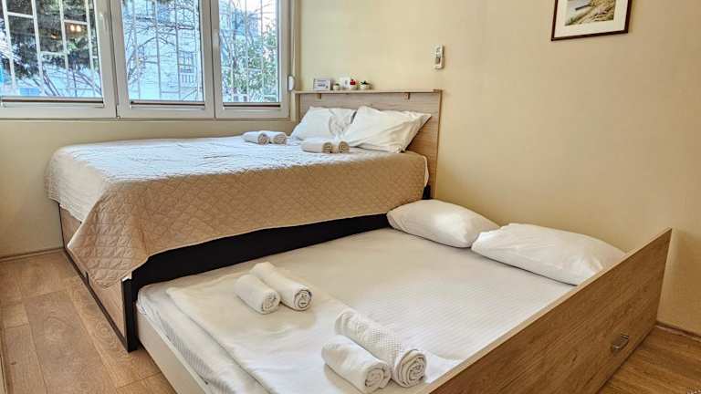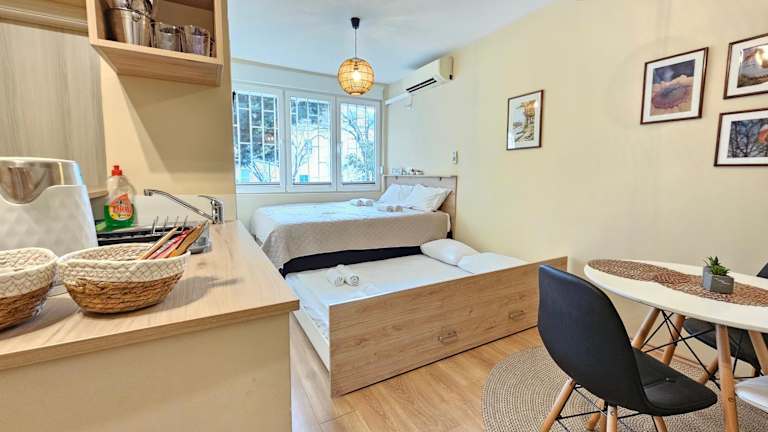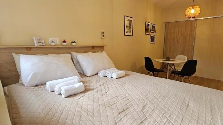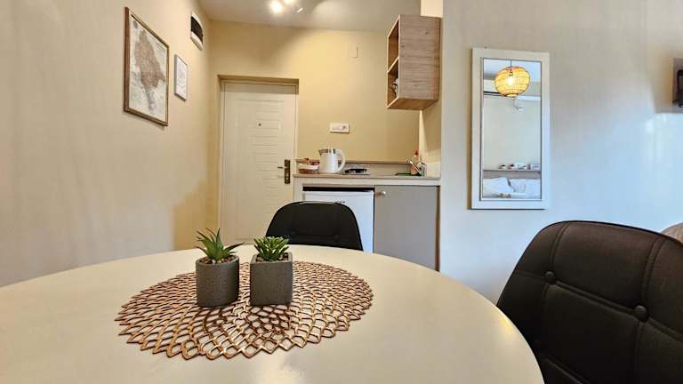 Das klimatisierte Apartment der Cicki Apartments I verfügt über ein gemütliches Schlafzimmer, ein geräumiges Wohnzimmer und eine voll ausgestattete Küche mit einem Kühlschrank und einem Wasserkocher. Das Badezimmer ist mit einer Dusche und kostenlosen Pflegeprodukten ausgestattet. Handtücher und Bettwäsche werden im Apartment gestellt, so dass Sie sich um nichts kümmern müssen. Genießen Sie den Stadt- und Gartenblick von der Terrasse des Apartments aus und nutzen Sie das kostenfreie WLAN, um mit Ihren Lieben in Kontakt zu bleiben.