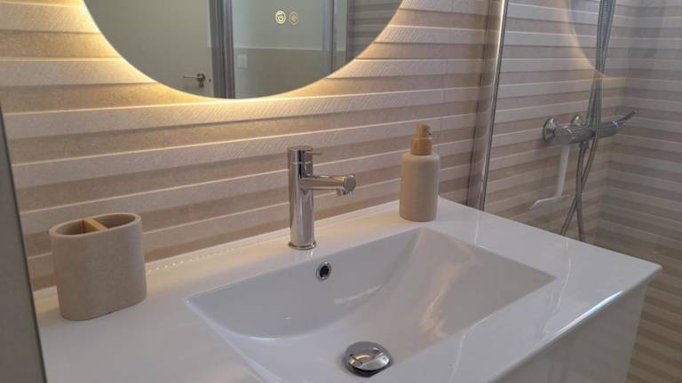 Die Ferienwohnung umfasst zwei Schlafzimmer, ein Wohnzimmer mit einem Flachbild-TV, sowie eine gut ausgestattete Küche mit Kühlschrank und Geschirrspüler. Es sind zwei Badezimmer mit Bidet vorhanden. Handtücher und Bettwäsche werden bereitgestellt.