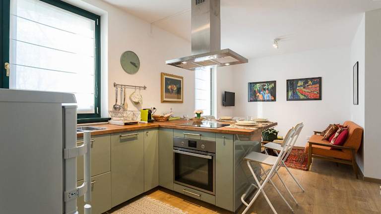 Die Ferienwohnung ist mit einer Küche ausgestattet, in der Selbstverpflegung möglich ist. Es sind keine weiteren Verpflegungsmöglichkeiten bekannt.