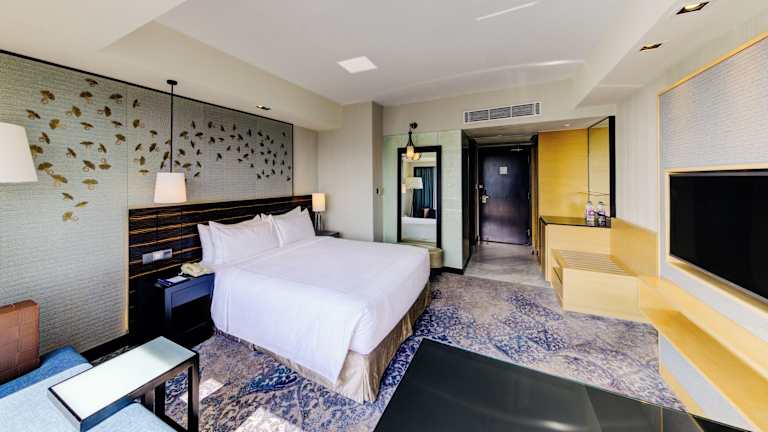 Die Zimmer sind modern ausgestattet und verfügen über Badezimmer mit Dusche und Badewanne, Klimaanlage, Minibar, Safe sowie Tee- und Kaffeezubehör. Die meisten Zimmer haben einen Balkon, und einige sind behindertengerecht. Hausschuhe, WLAN ohne Gebühr und Fernseher mit Satellitenempfang tragen zum Komfort der Gäste bei. Familienzimmer sind ebenfalls buchbar.