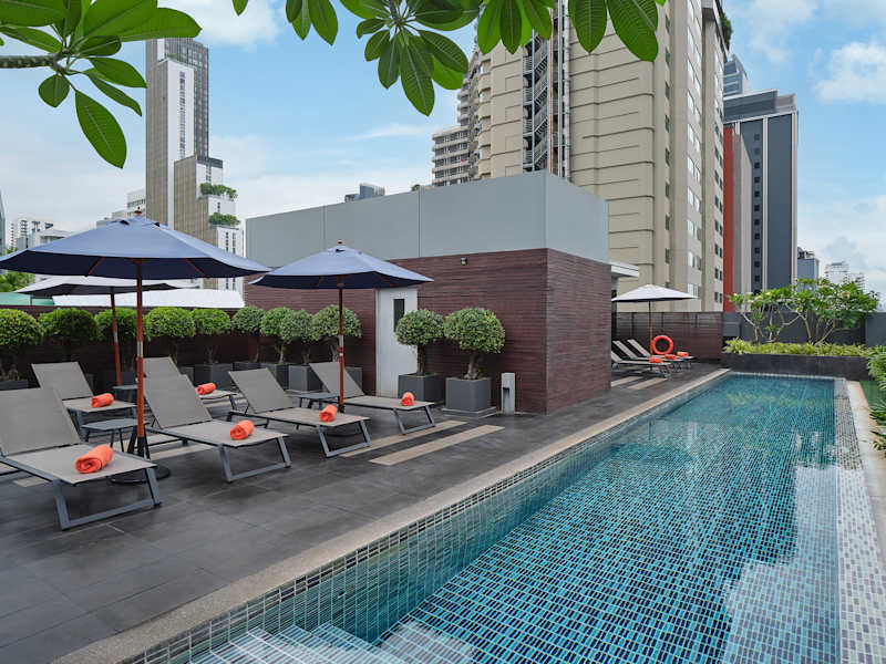 Das Citadines Sukhumvit 11 Bangkok - SHA Plus Certified liegt im Bezirk Soi 11, einem pulsierenden Vergnügungsviertel mit einem bunten Nachtleben, Restaurants und Pubs. In der Nähe finden Sie den beliebten Supermarkt Villa Market sowie weitere Einkaufszentren, Kliniken und Schulen. Die Skytrain-Haltestelle Nana ist etwa 15 Gehminuten entfernt. Der Lumpini Park und das Queen Sirikit Convention Center sind jeweils ca. 10 Autominuten entfernt. Die Kaufhäuser und Einkaufszentren Siam Paragon und Emporium erreichen Sie nach ca. 15 Minuten Fahrt. Die Flughäfen Suvarnabhumi und Don Mueang International sind etwa 45 km entfernt.