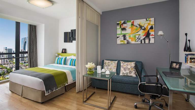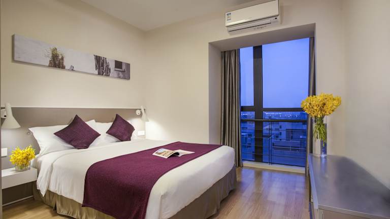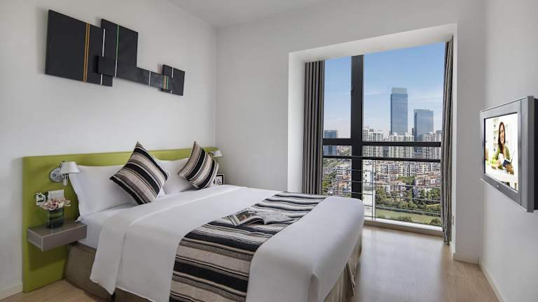 Die Zimmer im Citadines Xinghai Suzhou sind komfortabel und mit Klimaanlage ausgestattet. Viele Zimmer verfügen über einen Balkon und sind mit Teppichböden sowie einem Doppelbett eingerichtet. Die Kochnischen sind mit einem Kühlschrank, einem Herd, einer Mikrowelle, einer Tee-/Kaffeemaschine und einem Backofen ausgestattet, ideal für Selbstversorger. Zu den weiteren Annehmlichkeiten gehören ein Fernseher mit Kabel-/Satellitenempfang, ein Safe und ein Schreibtisch. Die Badezimmer sind mit Dusche und Badewanne sowie Haartrockner und Kosmetikartikeln ausgestattet. Rollstuhlgerechte Zimmer sind ebenfalls buchbar.