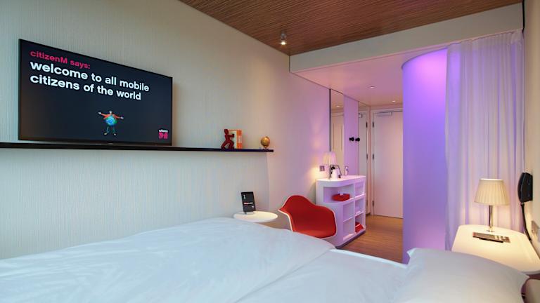 Die Zimmer im citizenM Glasgow sind elegant und modern gestaltet und bieten kostenfreies WLAN. Mit Hilfe eines iPads oder der kostenlosen citizenM-App können die Gäste die Zimmerbeleuchtung, die Verdunkelungsrollos, die Vorhänge, die Temperatur sowie die TV- und Radiokanäle steuern. Darüber hinaus können Gäste ihre eigenen Netflix-, Prime- oder Disney+-Konten nutzen und Inhalte auf dem TV streamen, indem sie ihr Telefon, Tablet oder Laptop über Chromecast verbinden. Dieser Service steht den Gästen ohne zusätzliche Kosten zur Verfügung.