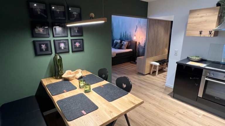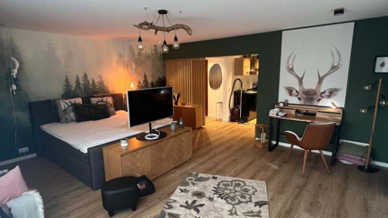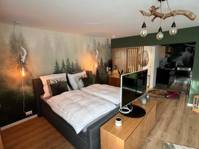 Die Wohnung umfasst ein Schlafzimmer sowie eine voll ausgestattete Küche mit Kühlschrank und Geschirrspüler. Des Weiteren stehen ein Flachbild-TV, ein Sitzbereich und ein Badezimmer mit Badewanne oder Dusche zur Verfügung. Handtücher und Bettwäsche werden bereitgestellt.