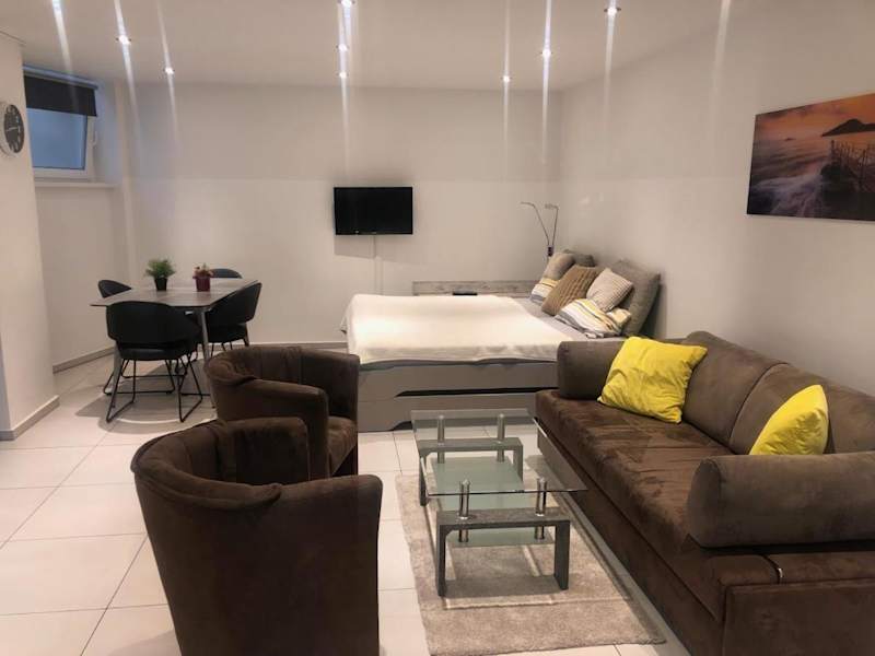 Das City Apartment bietet modernen Komfort und ist ideal für Reisende, die ein Zuhause fernab von Zuhause suchen. Das Apartment verfügt über zwei Zimmer mit einem gemütlichen Wohn- und Schlafbereich, der mit einem Flachbild-TV ausgestattet ist. Die komplett ausgestattete Küche bietet alles, was Sie für die Zubereitung von Mahlzeiten benötigen, einschließlich Geschirrspüler und Mikrowelle. Eine Waschmaschine steht ebenfalls zur Verfügung. Das Badezimmer verfügt über eine Dusche und bietet alle notwendigen Annehmlichkeiten. Kostenloses WLAN ist im gesamten Apartment verfügbar, so dass Sie immer mit der Welt verbunden bleiben können.