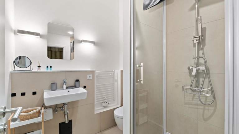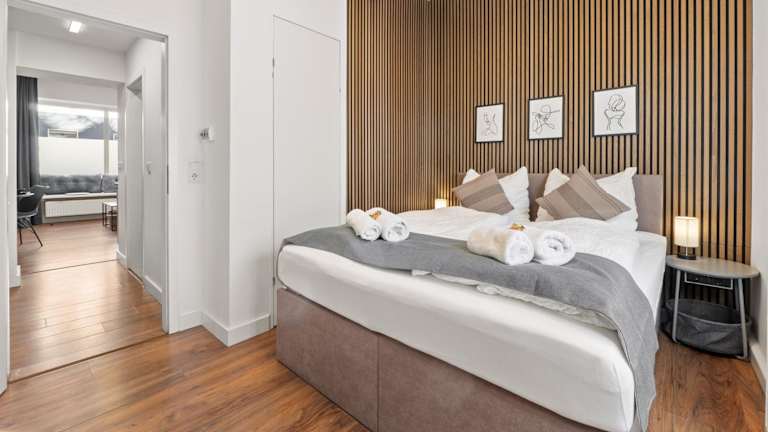 Die Ferienwohnung verfügt über ein Schlafzimmer, eine Küche mit Kühlschrank und Geschirrspüler, einen Flachbild-TV und einen Sitzbereich. Sie bietet 1 Badezimmer mit Dusche. Handtücher und Bettwäsche werden zur Verfügung gestellt. Allergikerfreundliche Zimmer sind verfügbar.
