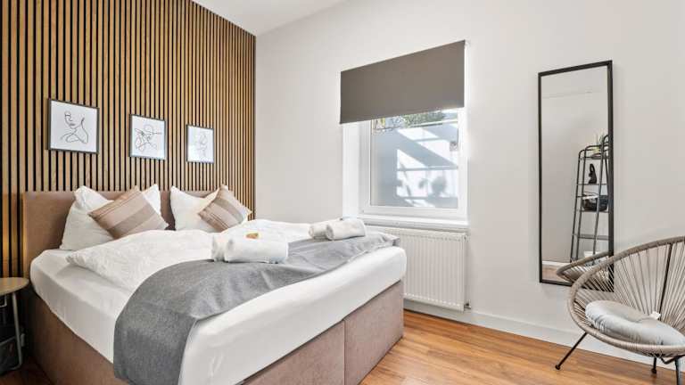 City-Apartment - Kurze Wege zu Messe und LanxessArena bietet eine Ferienwohnung mit Stadt- und Gartenblick. Die Unterkunft ermöglicht einen unkomplizierten Check-in zwischen 16:00 und 22:00 Uhr sowie Check-out von 07:00 bis 11:00 Uhr. Haustiere sind nicht gestattet, und die Mindestalter für Gäste und Check-in beträgt 0 bzw. 18 Jahre. Es wird darauf hingewiesen, dass Feiern wie Junggesellenabschiede nicht erlaubt sind. Die Unterkunft stellt sicher, dass Kontakt- und Hygienevorschriften eingehalten werden.