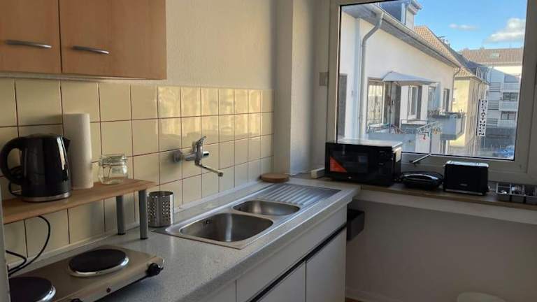 Das City Appartment 2 Krefeld 20km DUS Airport/Messe bietet ein gemütliches Apartment mit einem Schlafzimmer. Das Apartment ist mit modernen Annehmlichkeiten wie kostenfreiem WLAN, einem Flachbild-TV und einer Waschmaschine ausgestattet. Die Küche verfügt über einen Kühlschrank und eine Mikrowelle, so dass die Gäste ihre eigenen Mahlzeiten zubereiten können. Handtücher und Bettwäsche werden gestellt, um den Aufenthalt noch angenehmer zu gestalten.