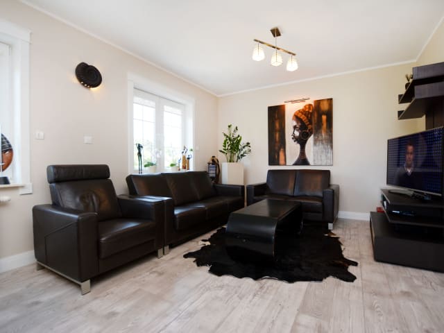 City Art HAUS IN GRZYBÓW – Reihenhaus mit einer Fläche von 106 m2, 50 Meter vom Meer (DIE ERSTE HAUSREIHE) in der ruhigen Ferienortschaft Grzybowo bei Kolberg (Kołobrzeg).Das Haus ist komfortabel, voll möbliert und ausgestattet, für max. 8 Personen. Vom Balkon aus erstreckt sich der Blick auf Dünen und in der Herbst- und Winterzeit auf das Meer.