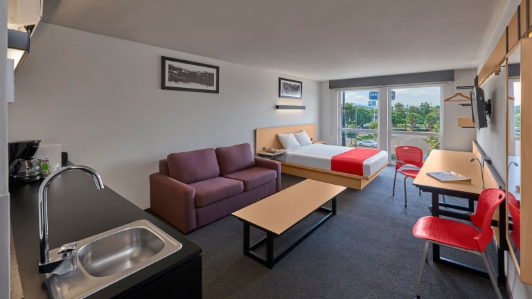 Das City Express by Marriott Queretaro Jurica befindet sich im Einkaufszentrum Urban Center, 3 km vom Park Jardin Zenea und 10 Fahrminuten vom Hauptplatz Alameda Hidalgo entfernt. Restaurants und Bars sind im Umkreis von 5 km verfügbar. Weitere Sehenswürdigkeiten sind das Einkaufszentrum Galerias Queretaro (2 km entfernt) und das Regionalmuseum (4 km entfernt). Der Park Cerro de las Campanas Hill liegt 1 km entfernt, und der internationale Flughafen Queretaro ist in einer 30-minütigen Autofahrt zu erreichen.