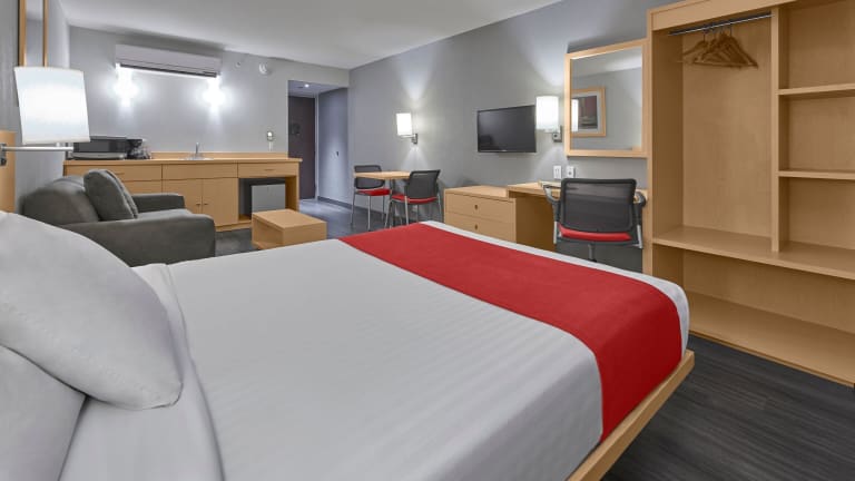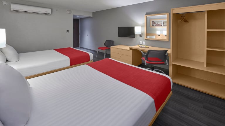 Die Zimmer sind großzügig geschnitten und in neutralen Farbtönen mit hellen Holzmöbeln eingerichtet. Jedes Zimmer ist mit Klimaanlage, Heizung, Flachbild-TV, Telefon, Schreibtisch und kostenfreiem WLAN ausgestattet. Im Badezimmer befinden sich eine Dusche und eine Badewanne sowie ein Haartrockner. Es sind auch rollstuhlgerechte Zimmer verfügbar.