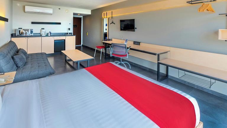 Die Zimmer sind mit Klimaanlage, Heizung, kostenlosem WLAN und einem Fernseher ausgestattet. Sie verfügen über ein Queensizebett, ein Sofabett sowie über einen Schreibtisch und einen Safe. In den modernen Badezimmern finden Gäste eine Dusche, Haartrockner sowie Kosmetikartikel. Barrierefreie Badezimmer sind auf Anfrage verfügbar. Einige Zimmer bieten zusätzliche Annehmlichkeiten wie eine Küchenzeile.