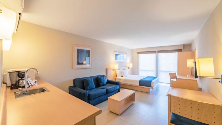 Die Zimmer sind modern eingerichtet und bieten eine Klimaanlage sowie einen Flachbild-LED-TV. Jedes Zimmer verfügt über einen Safe, eine Minibar, kostenloses WLAN sowie ein eigenes Bad mit kostenlosen Pflegeprodukten. Es sind sowohl Nichtraucherzimmer als auch rollstuhlgerechte Zimmer verfügbar.