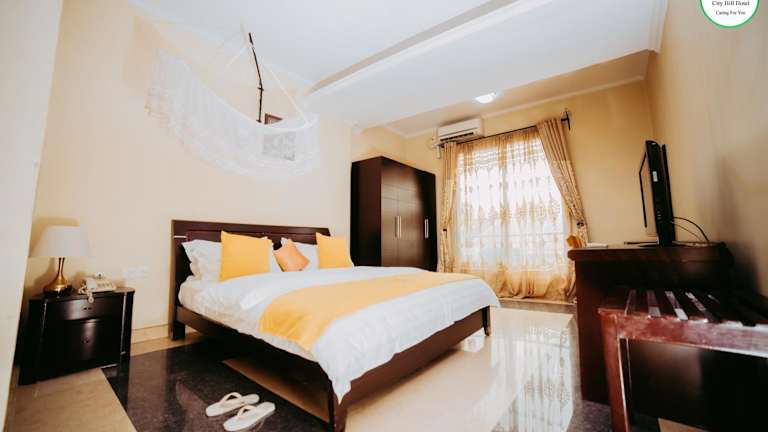 Das City Hill Hotel in Bujumbura bietet seinen Gästen einen angenehmen Aufenthalt mit einem Außenpool, kostenfreien Privatparkplätzen und einem Fitnesscenter. Genießen Sie afrikanische und französische Küche im Restaurant oder entspannen Sie bei einem Cocktail an der Bar. Die Zimmer sind komfortabel eingerichtet und verfügen über Annehmlichkeiten wie Klimaanlage und Flachbild-TV. Ein kontinentales oder veganes Frühstück wird angeboten und weitere Annehmlichkeiten wie ein Businesscenter und eine 24-Stunden-Rezeption stehen zur Verfügung. Der Flughafen Bujumbura ist nur 11 km entfernt.