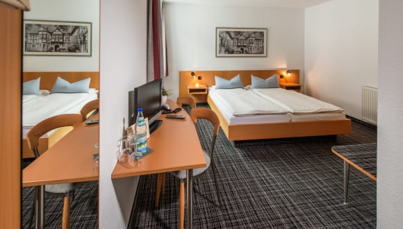 Die Umgebung des City Hotels eignet sich ideal zum Radfahren. Das Hotel bietet Fahrräder an, so dass Sie die Möglichkeit haben, die Stadt und ihre Umgebung auf zwei Rädern zu erkunden. Darüber hinaus steht Ihnen gegen Aufpreis eine Ladestation für Elektrofahrzeuge zur Verfügung. Das freundliche Personal an der Rezeption spricht Deutsch und Englisch und steht Ihnen gerne mit Informationen zur Umgebung und möglichen Freizeitaktivitäten zur Verfügung. Beliebte Sehenswürdigkeiten wie die Wartburg, das Reuter-Wagner-Museum und die Nikolaikirche Eisenach befinden sich ebenfalls in der Nähe der Unterkunft.