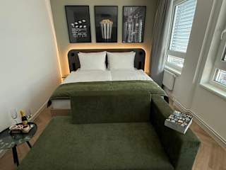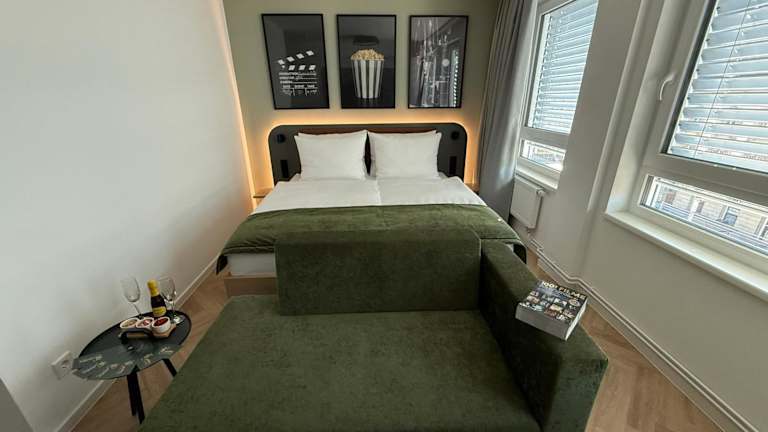 Das Cinema City Hotel bietet moderne, möblierte Zimmer mit privaten Badezimmern. Zu den Annehmlichkeiten gehören ein kostenloser Minibar-Bedarf am Anreisetag, Klimaanlage und kostenloses Highspeed-WLAN. Die Zimmer bieten zudem einen einzigartigen Blick auf das historische Postgebäude. Bei den Ankunftszeiten sind wichtige Hinweise zu beachten, insbesondere an Wochenenden, an denen die Rezeption eingeschränkte Öffnungszeiten hat.