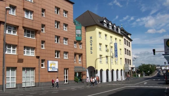 Das City-Hotel Kurfürst Balduin befindet sich in zentraler Lage in Koblenz. In nur 10 Minuten erreichen Sie zu Fuß das Kurfürstliche Schloss und das Deutsche Eck. Die Umgebung bietet zahlreiche Cafés und Restaurants, in denen Sie lokale Spezialitäten probieren können. Beliebte Freizeitaktivitäten wie Bootsfahrten entlang der Mosel und des Rheins oder der Besuch der örtlichen Weinberge sind ebenfalls möglich. Der Hauptbahnhof Koblenz ist nur 10 Gehminuten entfernt und die Autobahn A48 erreichen Sie nach 5 km.